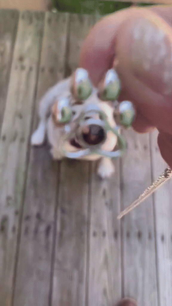 ולבסוף, כאשר התליון שלנו מחובר למקור אור, כמו פנס מטלפון סלולרי, האור עובר דרך הפנינה, מגדיל את התמונה ומקרין אותה על המשטח הנמצא מולו, בצורה דומה לפעולה של מקרן שקופיות.